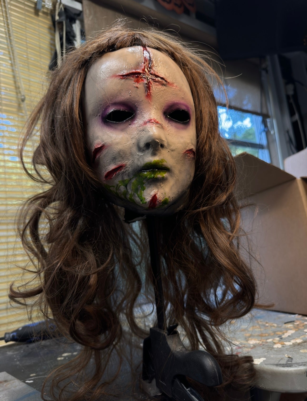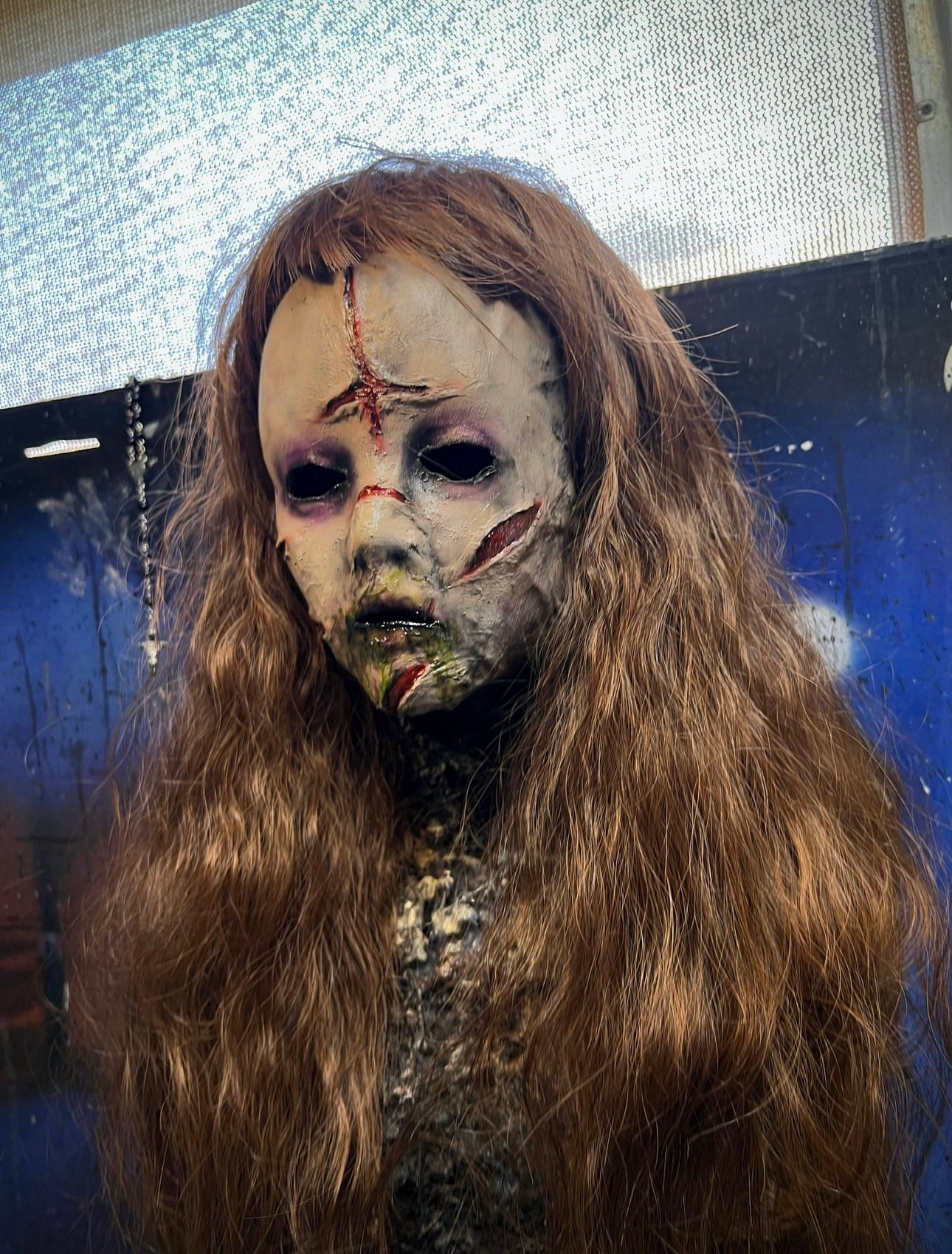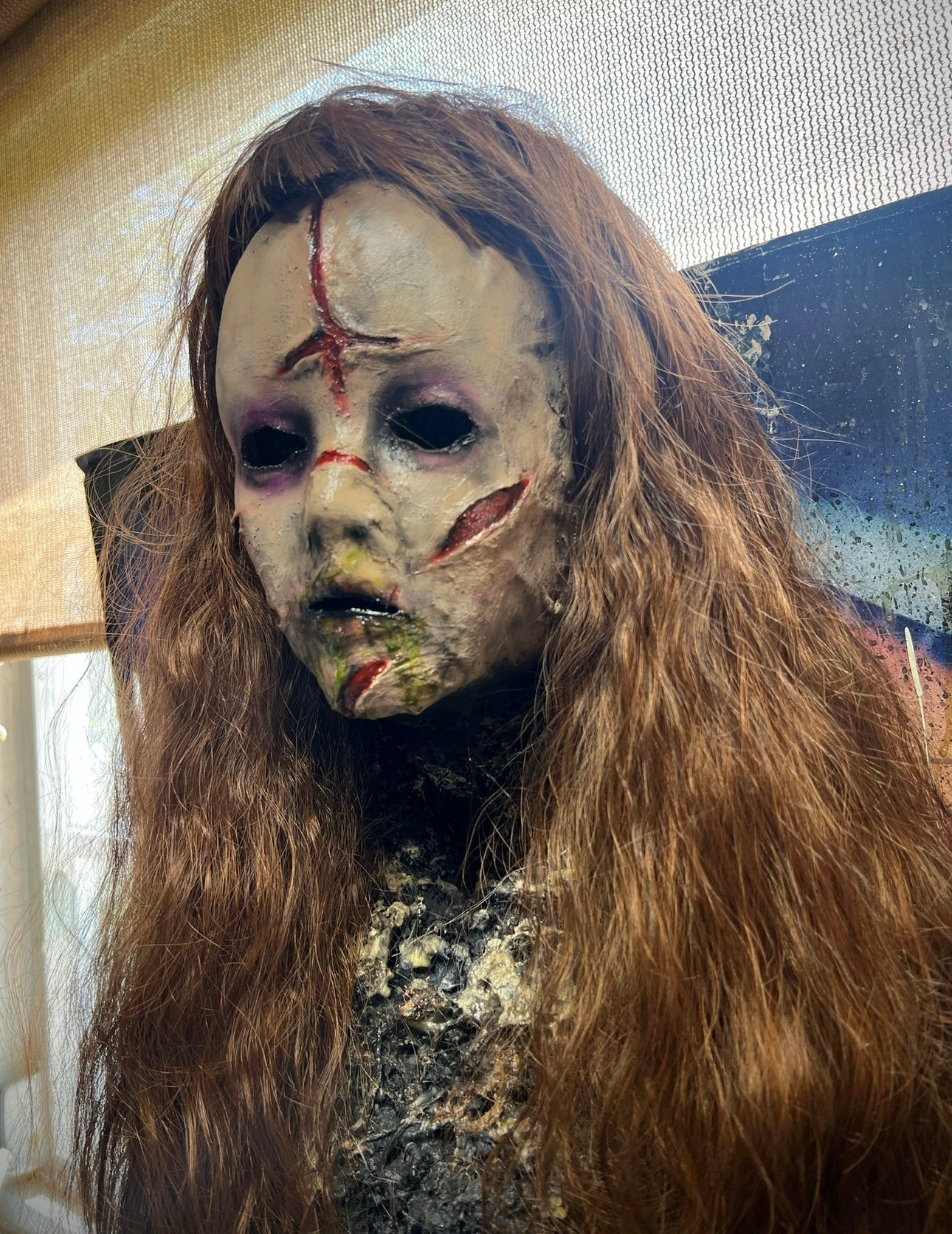 Muslin/latex build mask. Wig attached. Small/Female fit only.