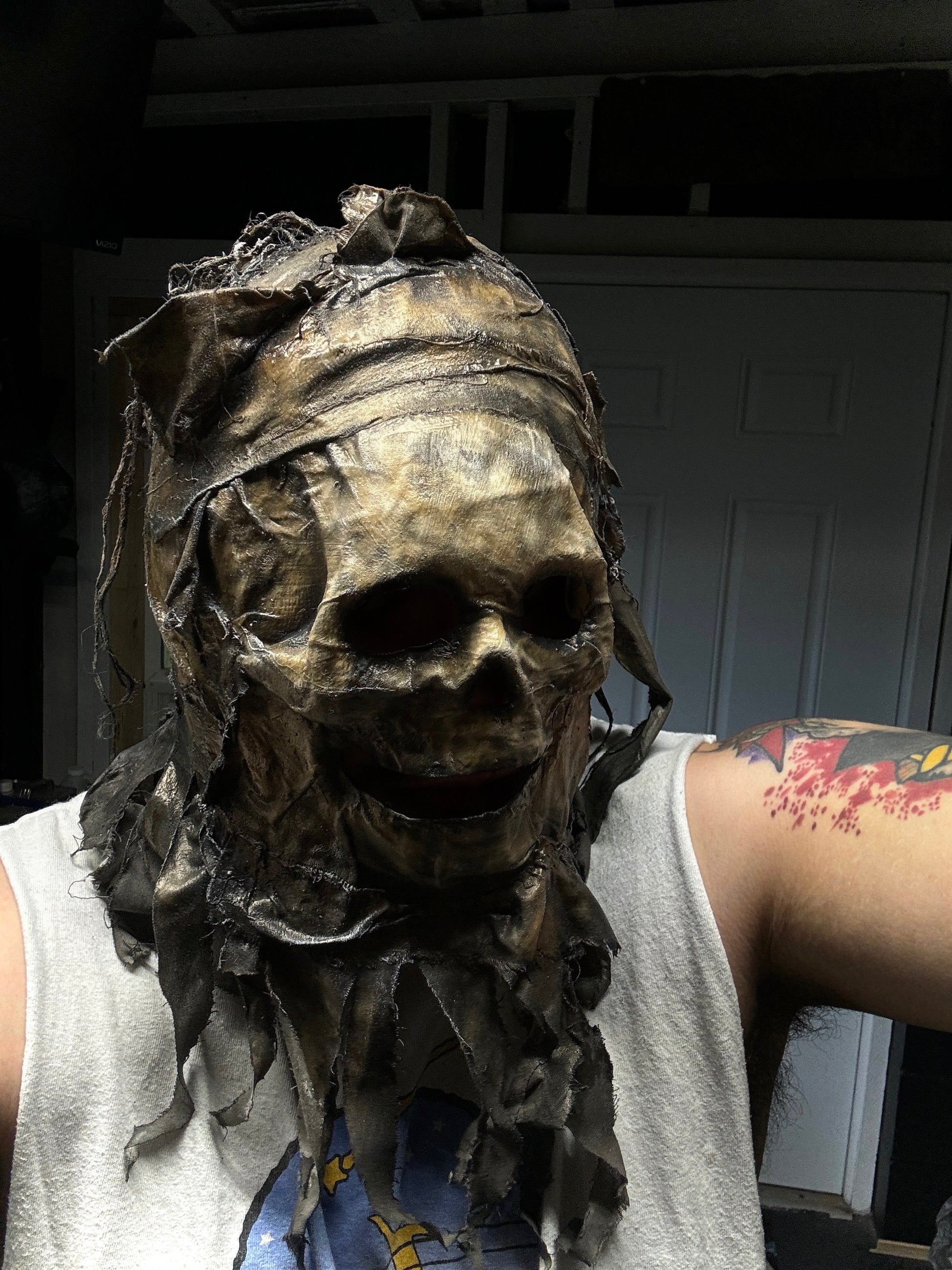Latex muslin mask. With burlap accents. Medium adult size mask.
